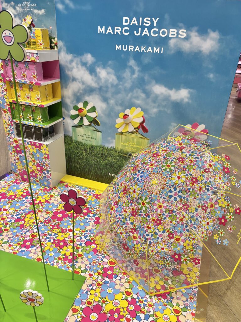 The collaboration between Marc Jacobs and artist Takashi Murakami floods the space with colourful, smiling flowers. You do not need to know the brand to stop in your tracks. The art direction does all the work, instantly. This is one of the most valuable functions of design in retail: creating a universal hook that reaches well beyond the usual target audience.
