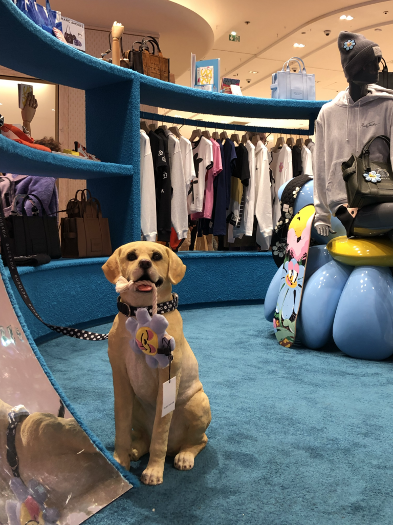 La scénographie joue un rôle essentiel dans l’expérience : formes organiques, couleurs franches et mascottes canines stylisées forment un décor playful pensé pour capter l’attention, susciter le partage et inviter à l’interaction. Plus qu’un simple point de vente, le pop-up fonctionne comme une installation immersive où le retail se fond dans l’art et l’émotion. Les collaborations annexes avec Converse, SHUT, Moleskine, Crayola ou Maxbone prolongent cet esprit de créativité collective et contribuent à bâtir un écosystème cohérent autour du thème de la joie.